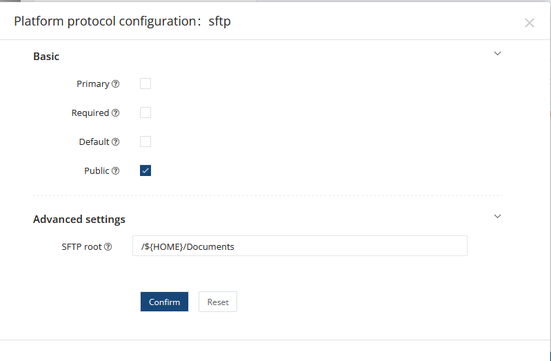 - ${USER} - имя пользователя - Сохраните изменения. Вы можете создать различные платформы с различными путями для SFTP и использовать их для разных активов.