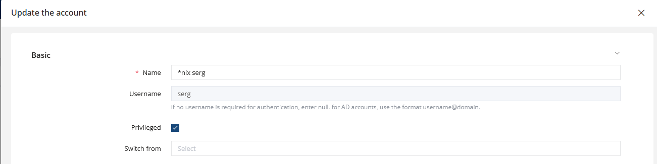 Any actions performed on target systems—such as creating accounts or SSH keys, discovering accounts, changing passwords, or rotating SSH keys—are executed by JumpServer on behalf of a privileged account that is added to your asset. This account must be marked as "Privileged" in its account properties: