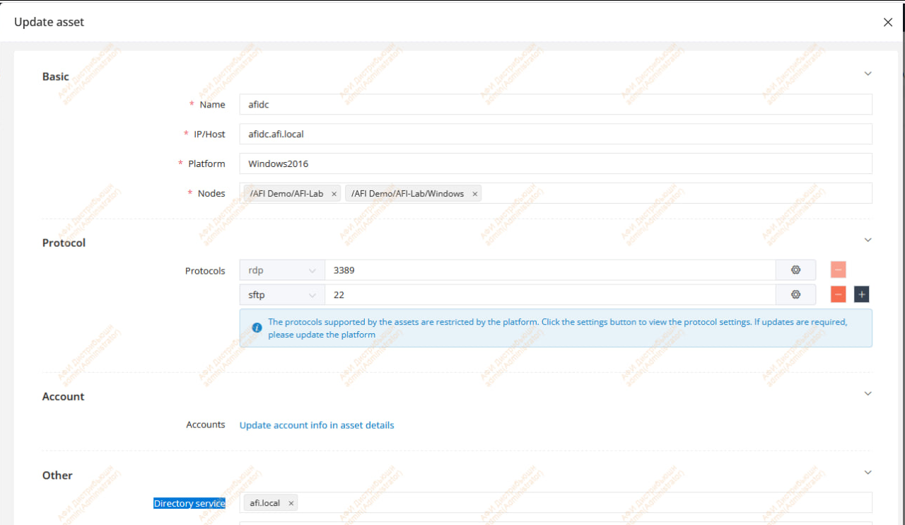 In Console → Assets, select the required asset and open it for editing. At the bottom, you should see the Directory service parameter. Specify the name of the DS asset you created.